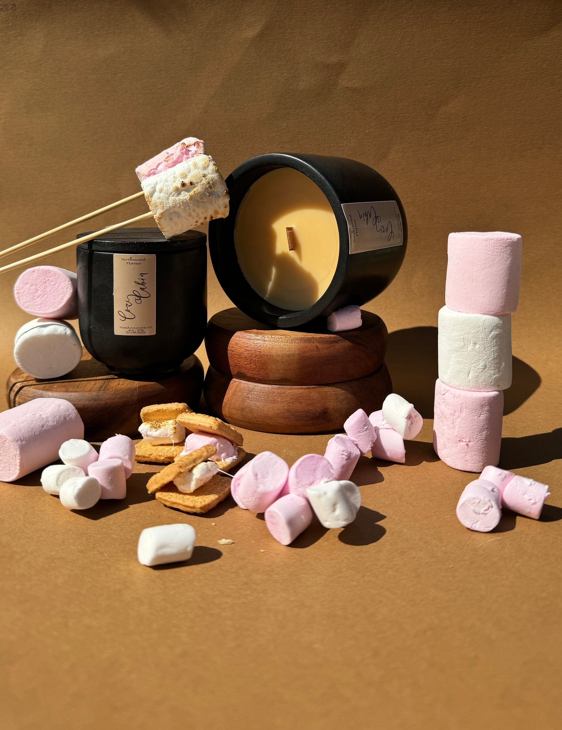 My birthday was always in the school holidays and I loved it because I never had to feel the pressure of bringing cakes or cupcakes to school for all the other children and I could wake up late and do whatever I wanted that day. What we usually did was go camping. I loved it because nature is just so calming and regenerating for the soul. In the evenings we would light a fire for warmth and cooking and of course the best part........ roasting marshmallows. Up until today this is the only way I can eat them. This scent reminds me of the sweet taste and smoky smell that you get from sitting around the fire toasting marshmallows and sharing laughs.