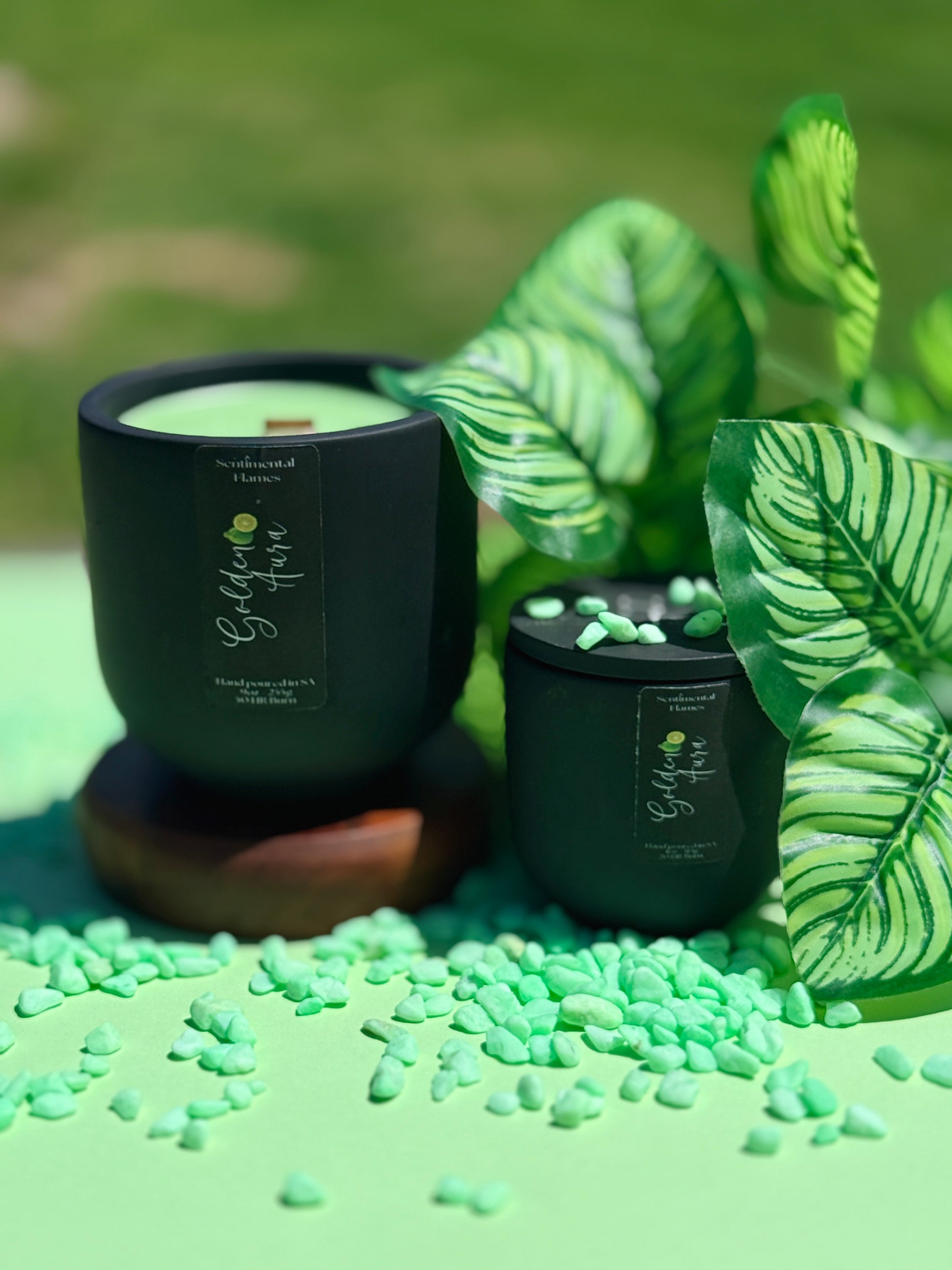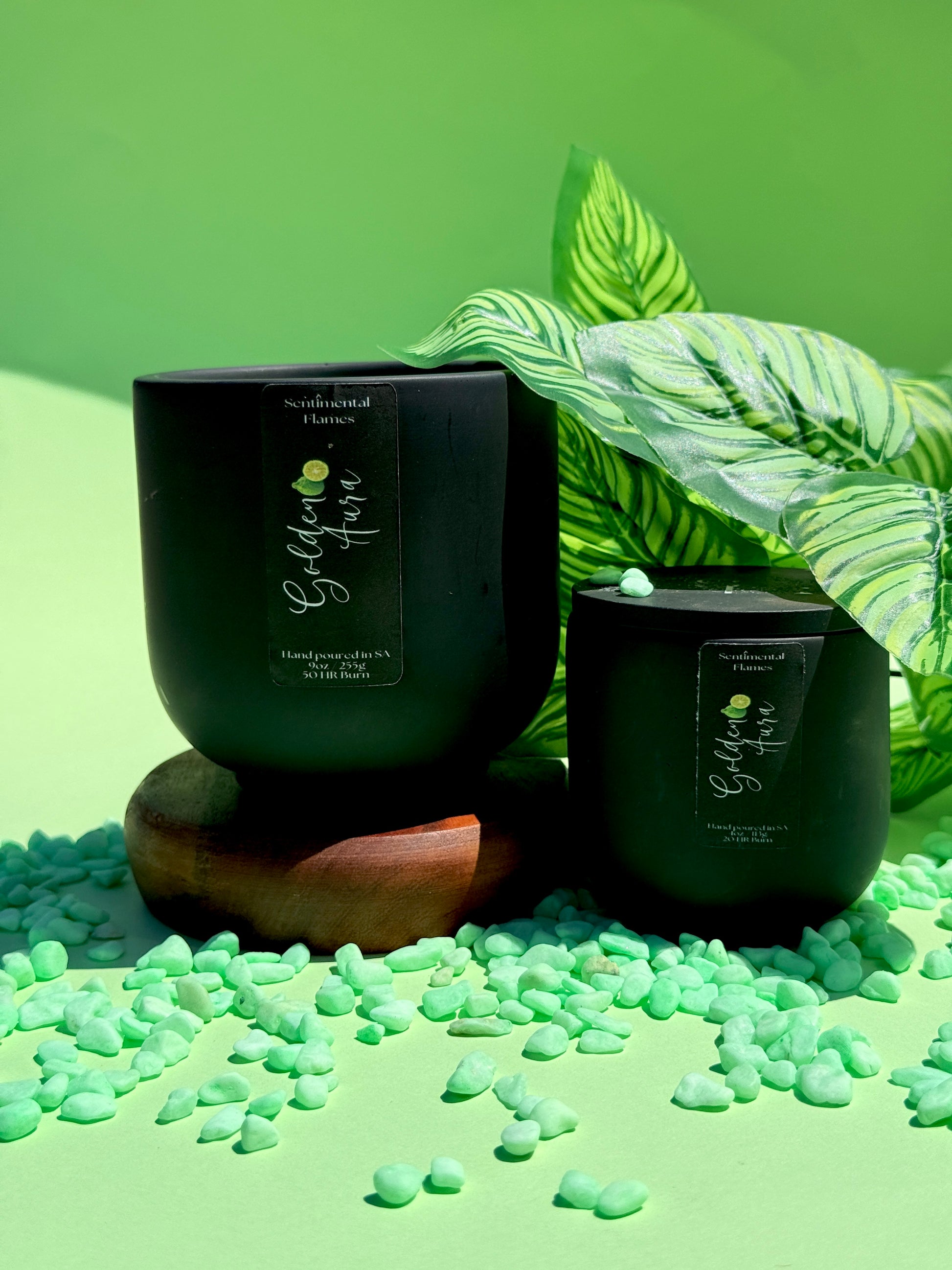 Golden Aura is a serene escape in a flame. Bright top notes of bergamot, lemon, and sweet orange awaken the senses like a sunlit morning. Soothing middle notes of green tea, black tea, and sea salt evoke tranquil spa rituals and coastal breezes. Anchored by a creamy base of soft sandalwood, this candle envelopes your space in warmth and calm. Golden Aura is your daily dose of balance—elevated, effortless, and glowingly grounded.