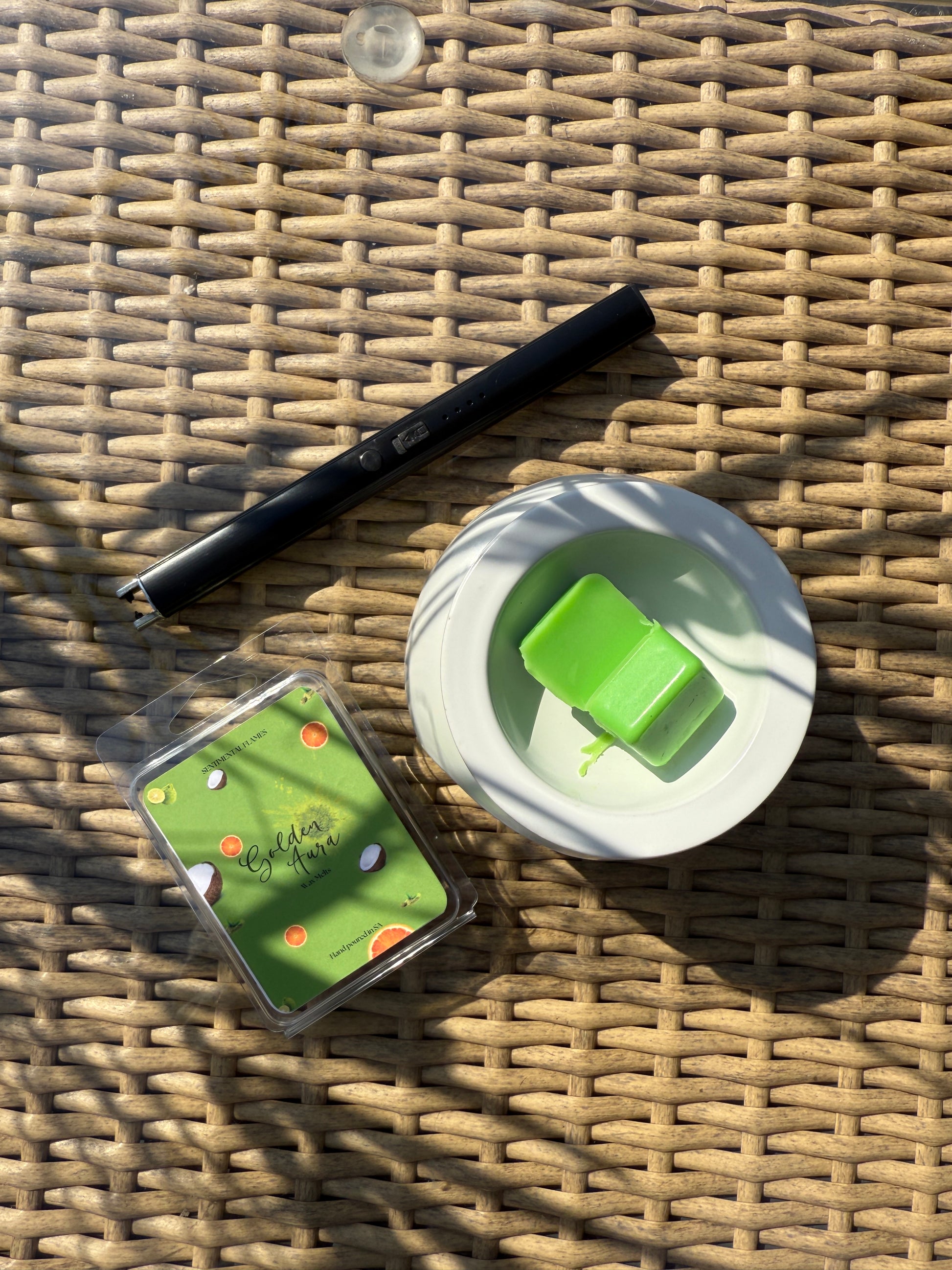 Golden Aura is a serene escape in a flame. Bright top notes of bergamot, lemon, and sweet orange awaken the senses like a sunlit morning. Soothing middle notes of green tea, black tea, and sea salt evoke tranquil spa rituals and coastal breezes. Anchored by a creamy base of soft sandalwood, this candle envelopes your space in warmth and calm. Golden Aura is your daily dose of balance—elevated, effortless, and glowingly grounded.