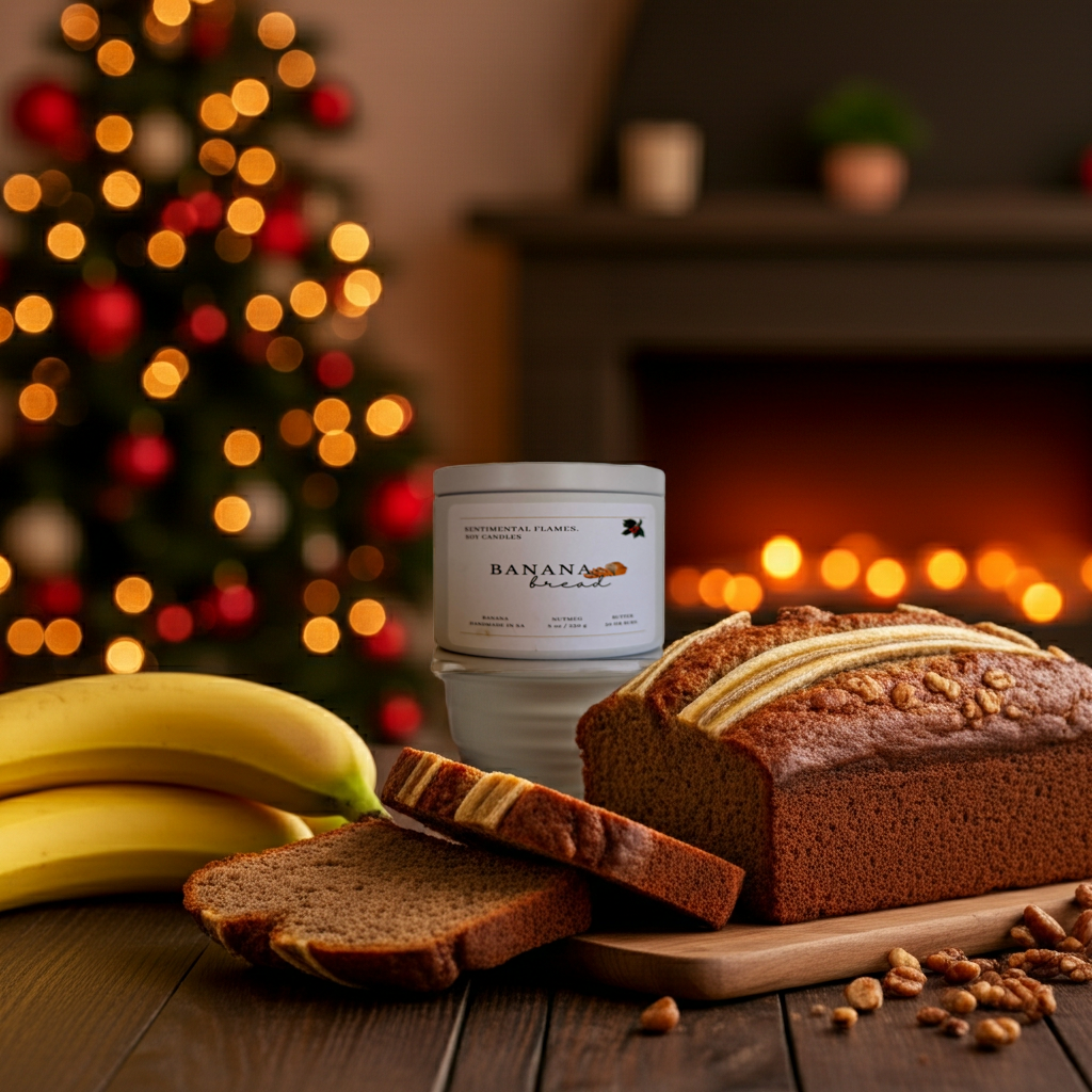 Indulge in the comforting warmth of home this holiday season with our Banana Bread candle — a luxurious nod to cherished Christmas mornings and the irresistible scent of something sweet baking in the oven.
