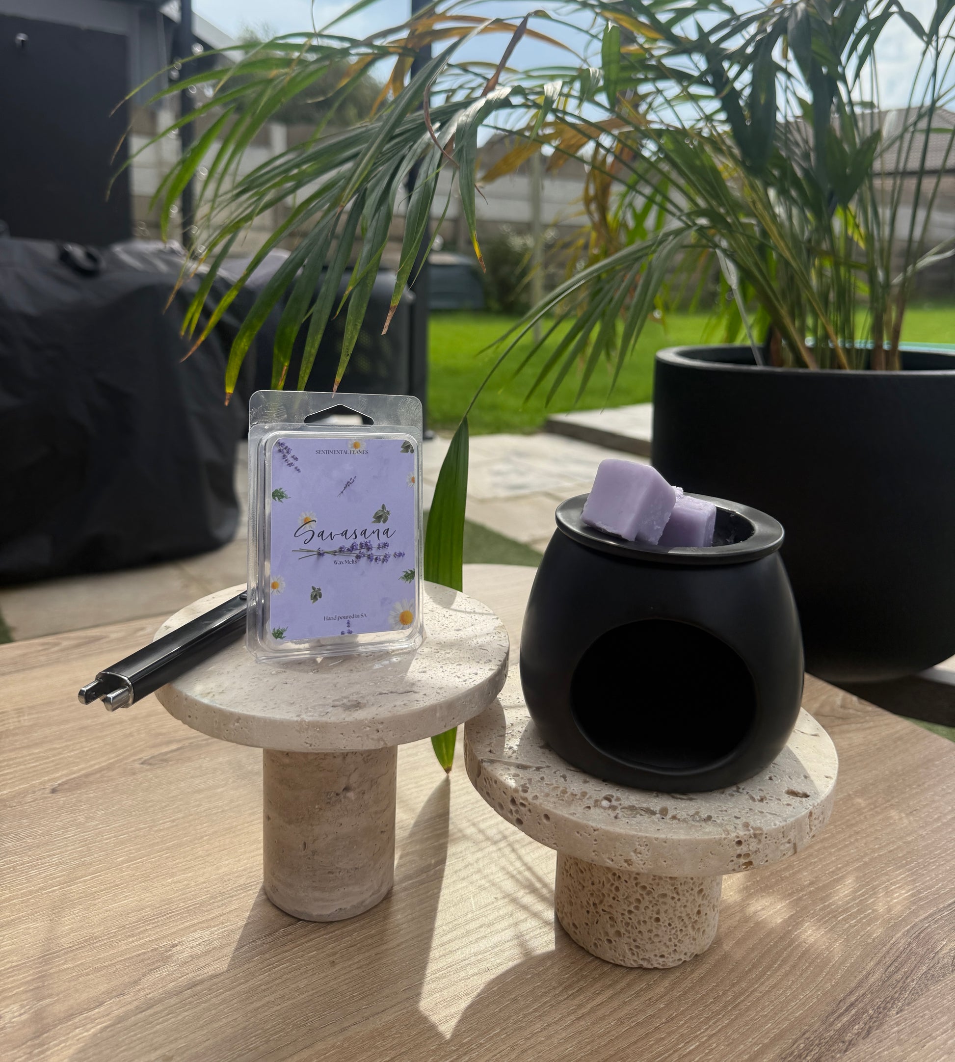 Introducing the Savasana candle, a serene blend of lavender, sage, and sandalwood that transports you to the tranquil ambiance of a yoga studio. With calming lavender, purifying sage, and grounding sandalwood, this candle creates the perfect atmosphere for relaxation and mindfulness. Light the Savasana candle and let its soothing fragrance guide you to a state of deep peace and tranquility, reminiscent of the blissful final pose in your yoga practice.